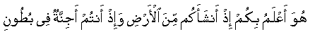 "…Dan Dia lebih mengetahui (tentang keadaan) mu ketika Dia menjadikan kamu dari tanah dan ketika kamu masih janin dalam perut ibumu; maka janganlah kamu mengatakan dirimu suci …" (QS. 53 An Najm - bintang - 32)